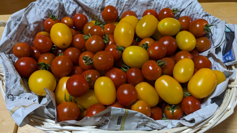 ご近所さんにミニトマトをどっさりいただいた\(^o^)/ 朝はパクパクそのままで。 夜は贅沢にもドバッとミキサーにかけて、めんつゆと塩昆布入れた変わり素麺つゆで素麺。
