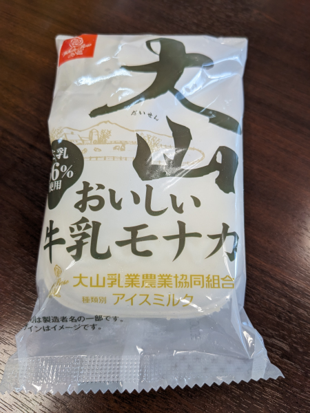 スーパーでアイスを買って、休憩所のところで食べた。 初めて見る、大山(だいせん)牛乳もなか。写真1と2 牛乳の味満載の懐かしい味がとても美味しかった(o^-')b ! このスーパー、大手のところでは置かないような、ちょっと珍しいものがちょこちょこあって、面白いんだよなぁ。