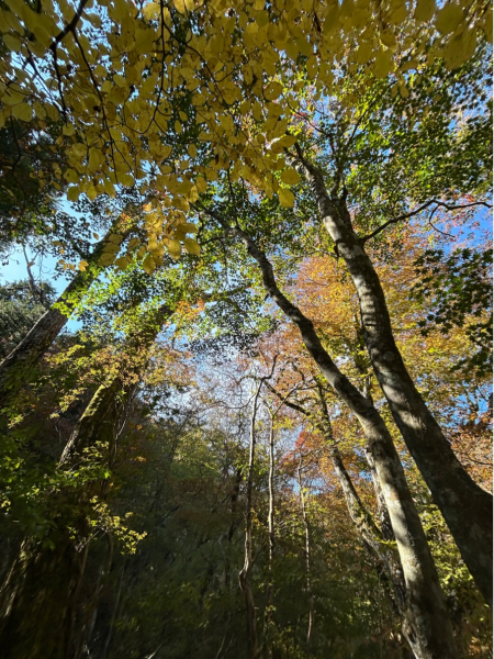 実はこの日エサは持っていなかったのですが ブナ林で写真撮っているとヤマガラ達が集まってきたので エサを持っているかのように手をかざしたら、すぐにこの通り。エサを与えるのは冬場だけにしているんですよ。
