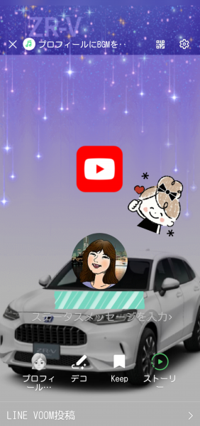 動く画面にしたら、星が天からツゥ〜と下がったり、 “YouTube“にコーラスの楽曲を上げているので貼り付けてみたり、 動くスタンプを押してみたり、、、