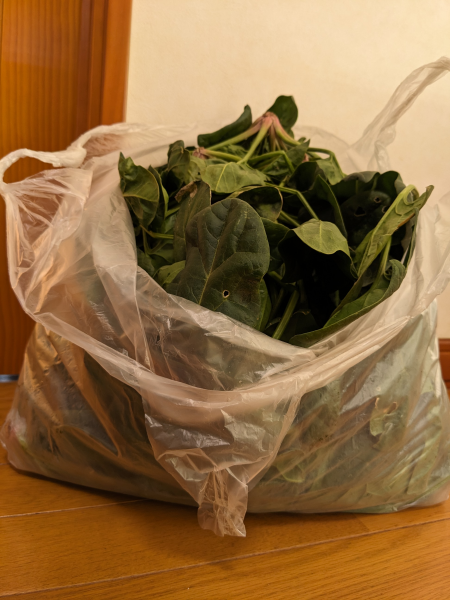 白菜2つ、大根2本、ほうれん草山ほど、ネギ1束。