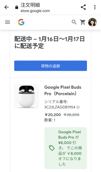 頂いたストアチケットの最後の注文の商品が届いた。
