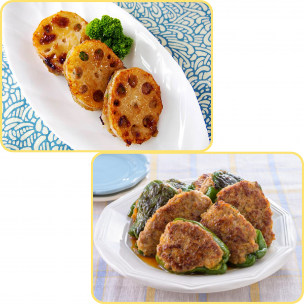 最近、肉詰め料理の完成度が高くなってきたので、冷蔵庫整理も兼ねて蓮根も使って貰う。 どちらも真っ茶茶⁉の仕上がり、、、画像はイメージで。 (笑笑)