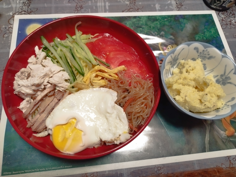 冷やし中華の具材 ポテサラ <( ̄︶ ̄)>