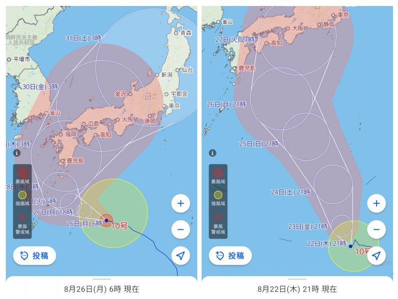 外は暑いけど風があって良い感じ。 このぐらいの風でおさまってくれると有り難いのだけど・・・ 8月22日現在と今日では予報円がじぇんじぇん違う〜(・・;)写真1