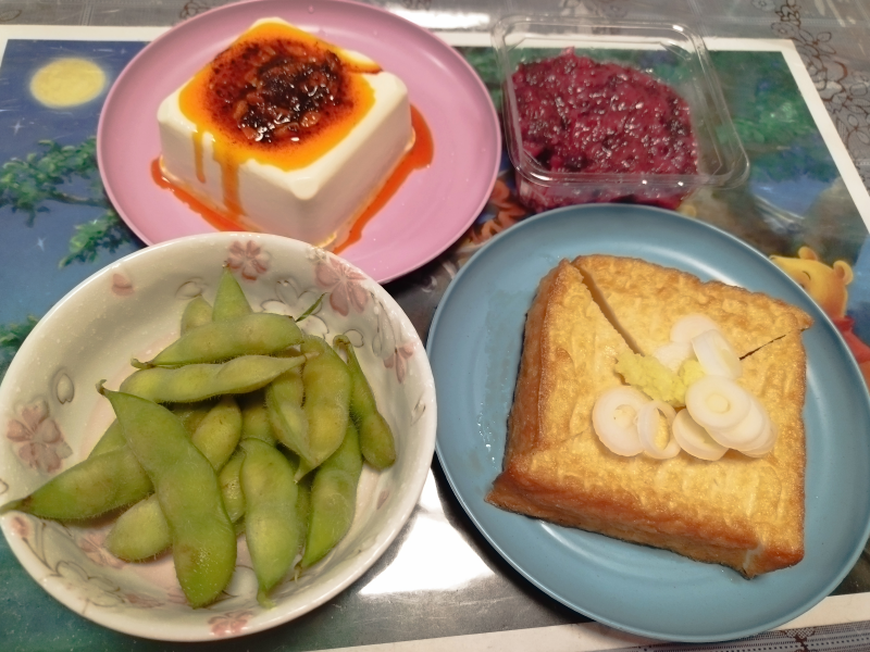 冷奴 梅クラゲ 枝豆 厚揚げ <( ̄︶ ̄)>