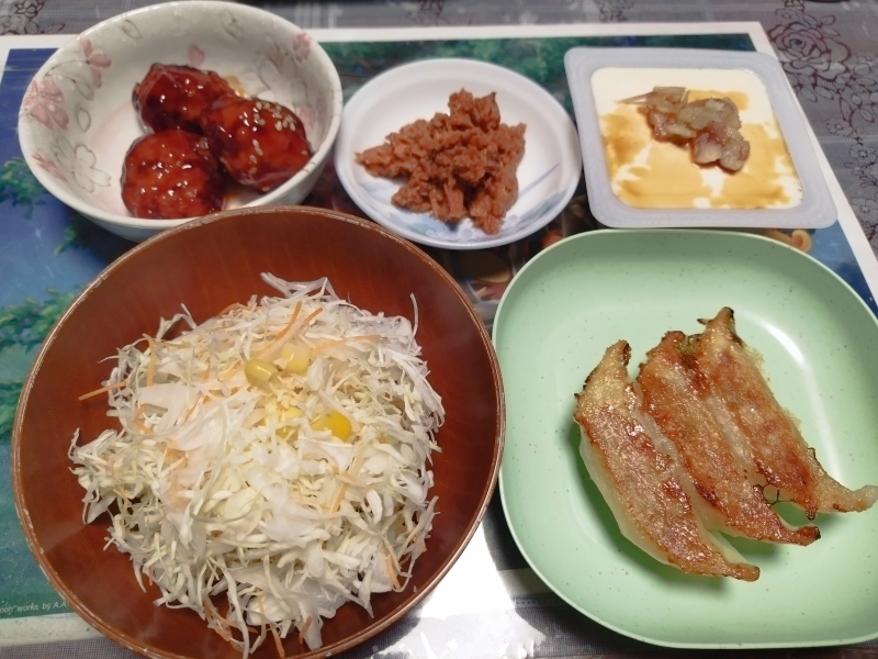 コーンMixサラダ 餃子 <( ̄︶ ̄)>