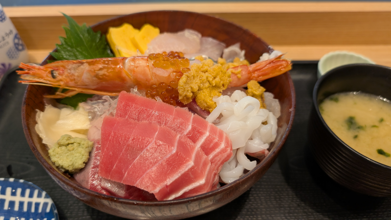 海鮮丼、隠れるように中からぶっ厚い身がこれでもかと出てきて、 ご飯少なめにしたら、刺身盛り合わせのように具だけ残ってしまいました。 もちろん、全部食べましたよ。 ヾ(*’O’*)/