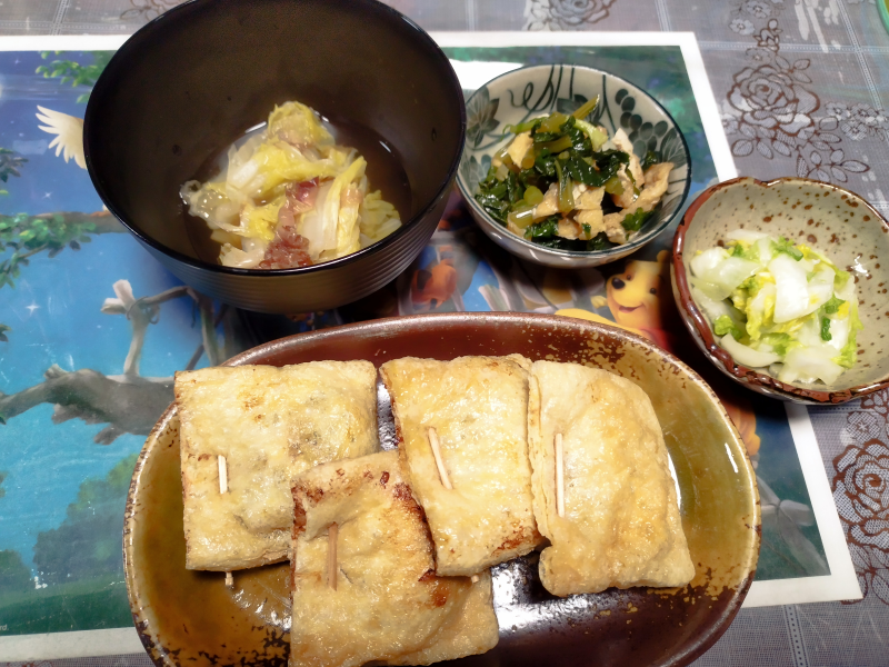 白菜浅漬け 油揚げの詰め焼き <( ̄︶ ̄)>