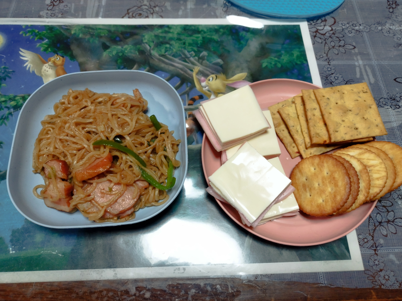 焼きそばの麵を買っていなかったので カップ焼きそばで作ったけど ちょっと水分残ってる。。(。-`ω-) も少し しっかり水分飛ばしたかったなぁ