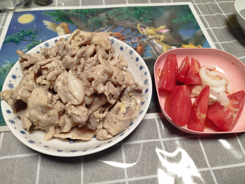 豚肉炒め辛子マヨ和え オニトマ <( ̄︶ ̄)>