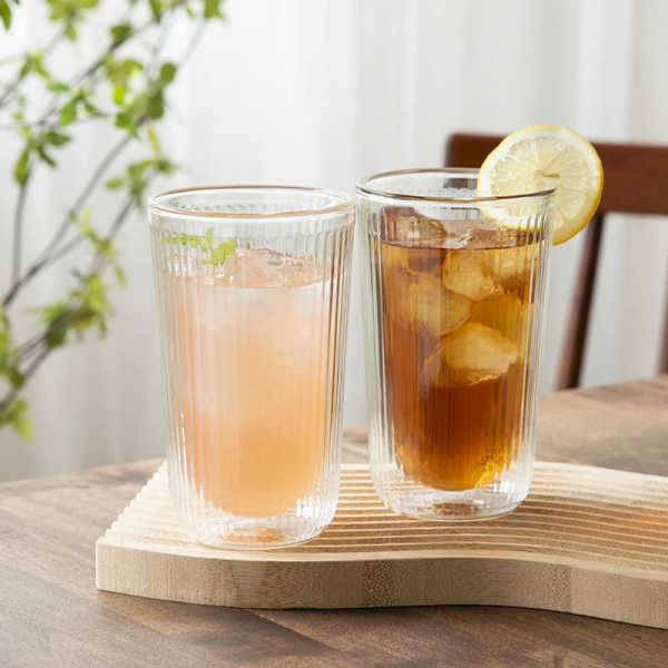 たっぷりHOTの紅茶を入れる時にも使えるし、氷入りのドリンクもOK。 とにかく何でもガブ飲みする私には、ぴったりのグラス。
