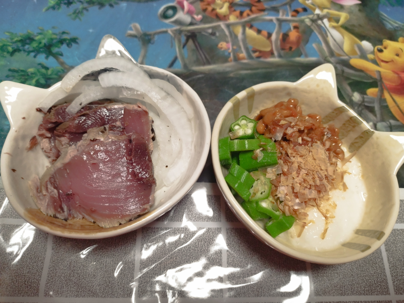 前日のアサリの炊き込みご飯が残っていて 白いご飯が炊けなかった (ノД`)・゜・。 三練りは 丼でも美味しいんだけどね~~