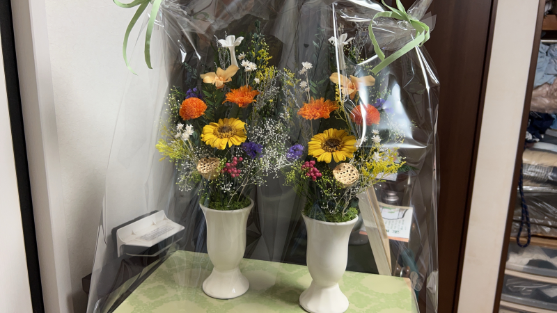 朝から日差しが強い、セミの鳴き声がうるさい。昨夜、モロヘイヤ、ほうれん草、もちろん削り節掛ました 仏壇左右に、造花オーダーして取りに行きました。飾る前に写真写しました、注文して約一週間かかりました。