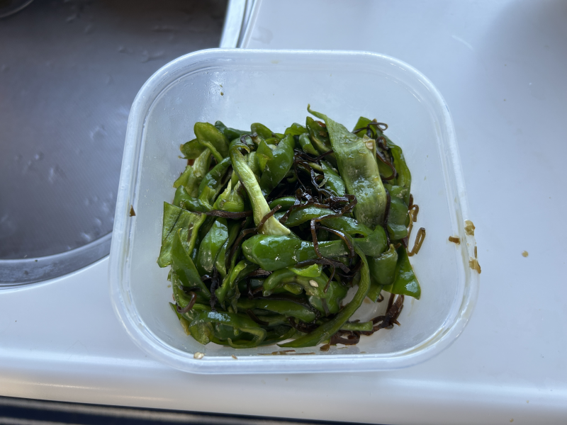 さて、昨日幸せは食の話 昨夜、ピーマンを短冊切りにして、塩昆布に絡めて、一晩おいた。つまんだが、じつに美味い。たったこれだけの簡単料理ですが、ピーマンが好きな私にはご馳走です。 本当に簡単だし、今ピーマンは安い、わたしが今回切ったピーマンは小粒で大変短冊切りしずらいピーマンでしたが、自分が食べるだけですから何も問題はない。 生姜焼き用の豚肉を簡単に切って、焼うどんにした、今回はソースではない醤油にした、かなり薄味にしたから、削り節と青のりをかけて薄味を助ける。食べきれず、今朝も残りをいただく。 今朝は4時起きでしたから、洗濯もし終えて今ゆっくりとしています。6時50分富士山は全く見えません。4時ごろはうっすらと見えたんですがね。