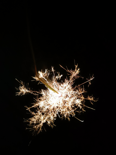 夜は庭で花火、5歳の姉は花火を持たせようとすると怖がる。
