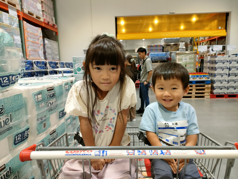昨日はお昼に予約していたので、それまでコストコへ。 孫っち2人を乗せてジイジは台車係。 良いショットが撮れました。向こうに見えるのはパパとママ。