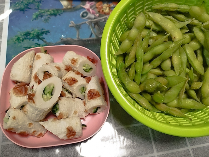 サバのたたき 酢の物 たこマリネ ちくわキュウリ 枝豆 <( ̄︶ ̄)>