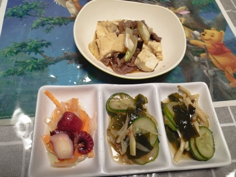 肉豆腐 たこマリネ 酢の物 <( ̄︶ ̄)>