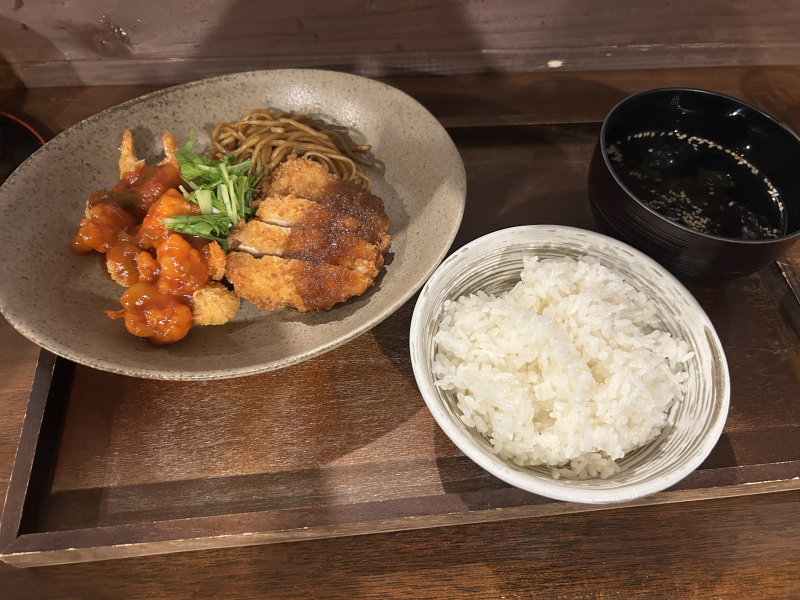 今日の日替わりランチは『エビチリ&おろしチキンカツ』で、まさに「エビチリが辛くて、ご飯食べらさるー!」だったわけww