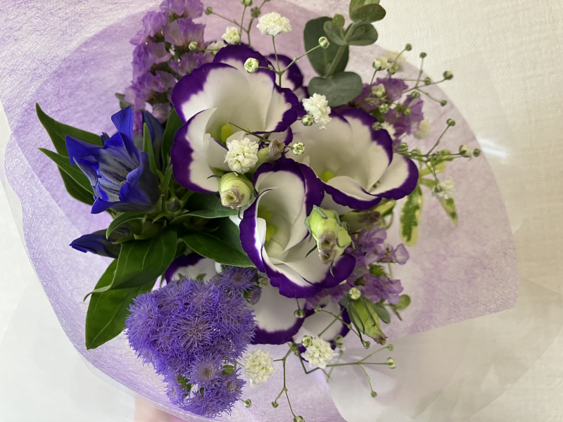 毎月買っていく花 「桔梗」のリクエストだったがなかったのでトルコ桔梗で作ってもらった