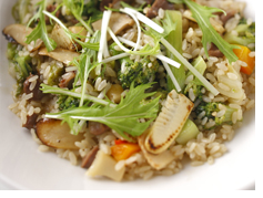 唐辛子オイル少々=植物油大匙1 醤油少々=大匙1 ごま油少々=小匙1 水菜適宜 リゾットの米440g(549.6g) ブロード(水230cc+コンソメの素10g) 米・もち米487.3g=生米230g オリーブオイル40cc=34.6g ローリエ1枚 食材 (2 人前) *固形コンソメ 10 g 23.5 kcal *玉ねぎ 30 g 11.4 kcal *オリーブオイル 34.6 g 318.67 kcal *米・もち米 487.3 g 818.66 kcal *ワイン(白) 15 g 10.95 kcal 1183.18 kcal (1人前 591 kcal) ブロード400㏄(水383cc+コンソメの素16.66g) ![]()