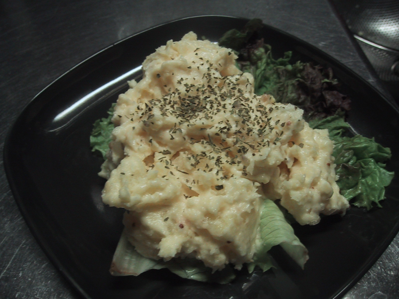 マヨネーズにすりおろしたにんにくと粒マスタードを加えて風味と辛みをきかせてます。マスタードはインド料理でもよく使われるスパイス、古くは薬としても使われてたくらい体にいいものです。ポテサラ感覚でビールとの相性もバツグンです。