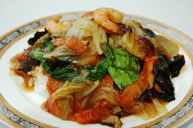 ステップ2の「あん」にボイルした野菜、キムチを入れ再度アツアツに温め、ご飯にかければヘルシー炒飯の出来上がり~!