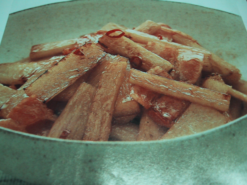 長いものシャリシャリとした歯ごたえが楽しいきんぴらです。ベーコンはサッと炒めて、シューシーさを残します。